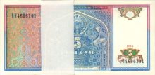 Uzbekistan 5 sum 1994. (Bundle 50 pcs). UNC. P-75