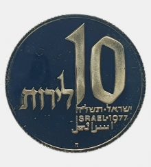Israel 10 lirot 1977. Hanukkah-Jerusalem Lamp. PROOF
