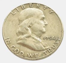 United States half dollar 1954. Franklin Half Dollar. (Letter S). XF