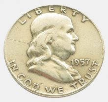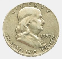 United States half dollar 1957. Franklin Half Dollar. XF+