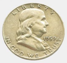 United States half dollar 1959. Franklin Half Dollar. XF+