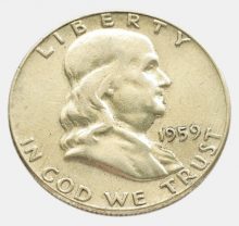 United States half dollar 1959. Franklin Half Dollar. (Letter D). XF+