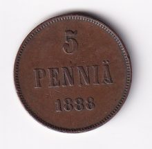 Finland-Russia 5 pennia 1888. Alexander III. XF