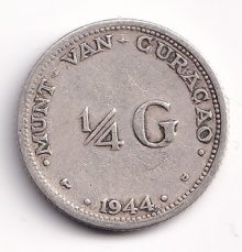 Netherlands ¼ gulden 1944. Wilhelmina. XF-
