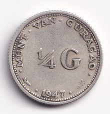 Netherlands ¼ gulden 1947. Wilhelmina. XF