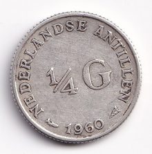 Netherlands ¼ gulden 1960. Juliana. XF+