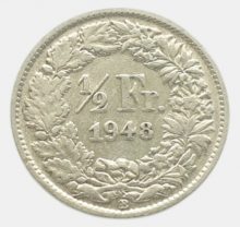 Switzerland ½ francs 1948. Helvetia. XF