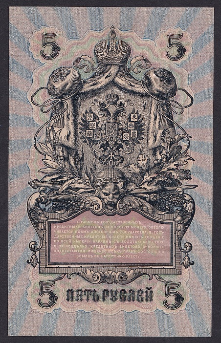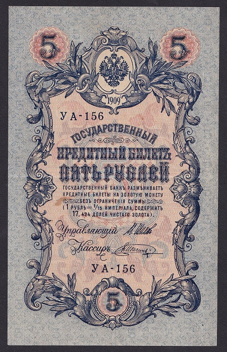 Russia 5 roubles 1909. (Series У. A). VF. P-10b(1)