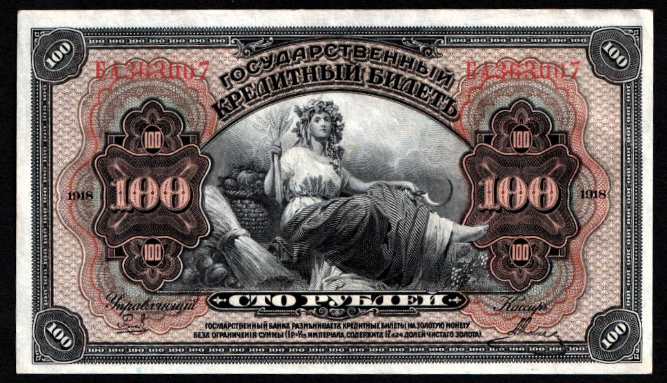 Russia-East Siberia-Pribaikal region 100 roubles 1918. (Series BA). AU. P-S1197