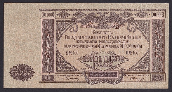 Russia-South Russia High comand of the armed forces in South Russia 10.000 roubles 1920. UNC. P-S425