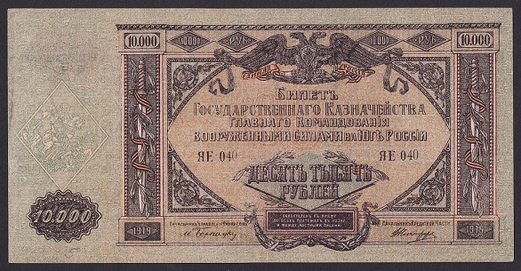 Russia-South Russia High comand of the armed forces in South Russia 10.000 roubles 1920. XF++. P-S425