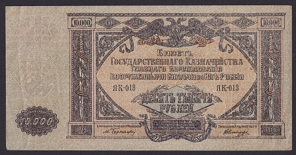 Russia-South Russia High comand of the armed forces in South Russia 10.000 roubles 1920. XF+. P-S425