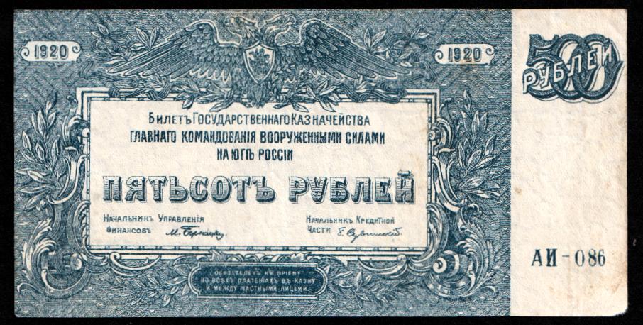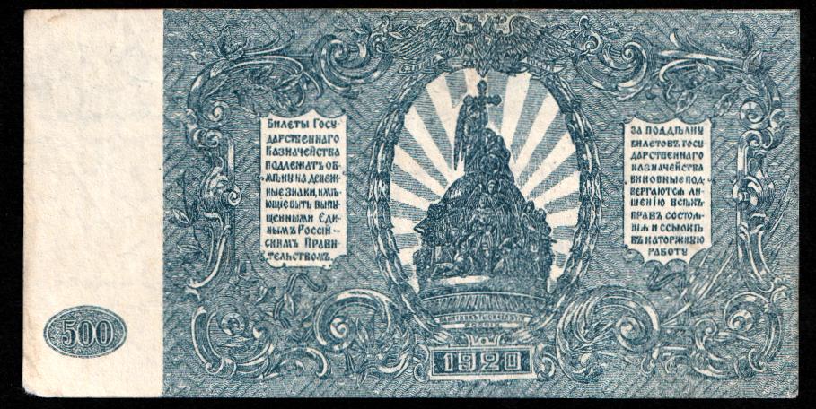 Russia-South Russia High comand of the armed forces in South Russia 500 roubles 1920. XF+. P-S434
