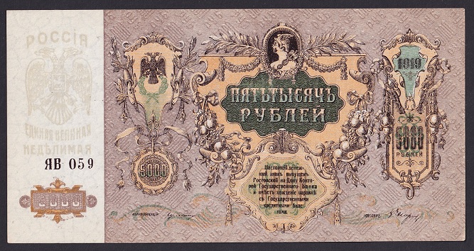 Russia-South Russia-Rostov on Don State Bank 5000 roubles 1919. (Series Я). UNC. P-S419d