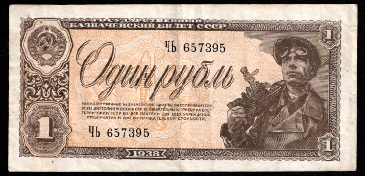 Russia 1 rouble 1938. XF+. P-213