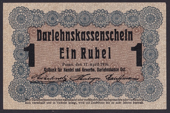 Germany-Lithuania 1 rubel 1916. AU. P-R122