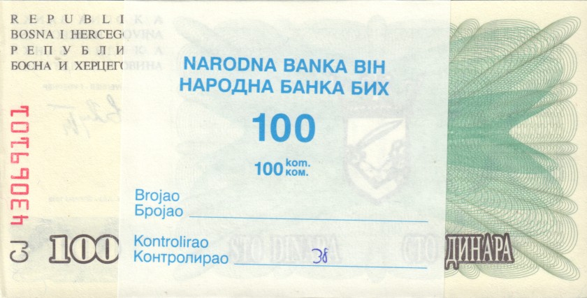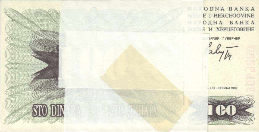 Bosnia and Herzegovina 100 dinara 1992. (Bundle 50 pcs). UNC. P-13