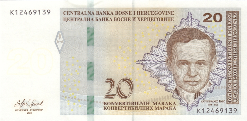 Bosnia and Herzegovina 20 konvertibilnih maraka (convertible marka) 2024. UNC. P-82c