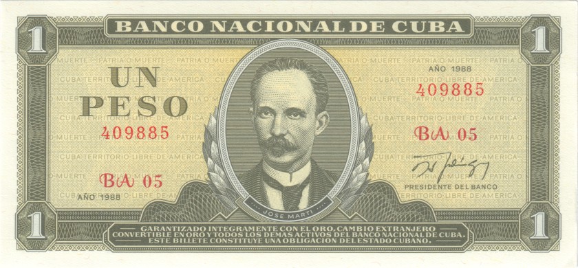 Cuba 1 peso 1988. AU. P-102d