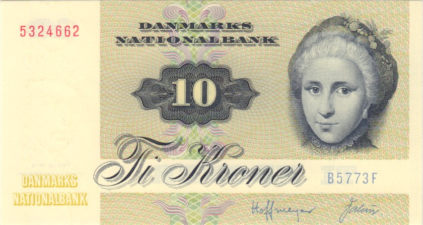 Denmark 10 kroner 1977. UNC. P-48g(2)