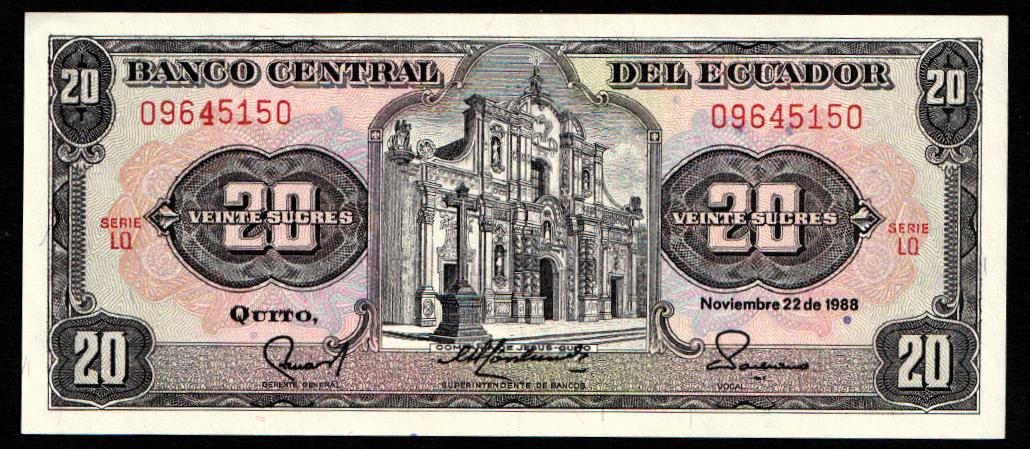 Ecuador 20 sucres 1988. UNC-. P-121Aa