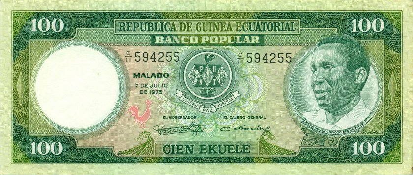 Equatorial Guinea 100 ekuele 1975. AU. P-11