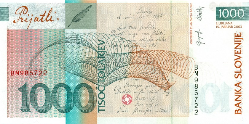 Slovenia 1000 tolars 2003. UNC. P-32a