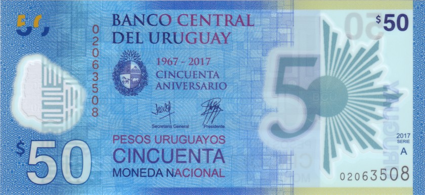 Uruguay 50 pesos uruguayos 2017. UNC. P-100
