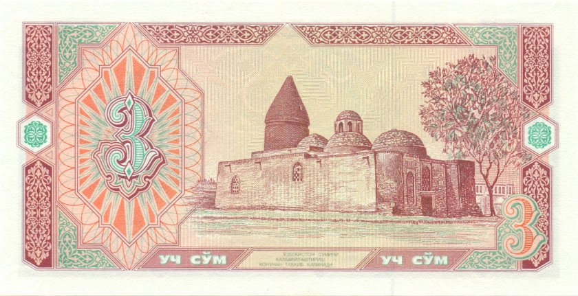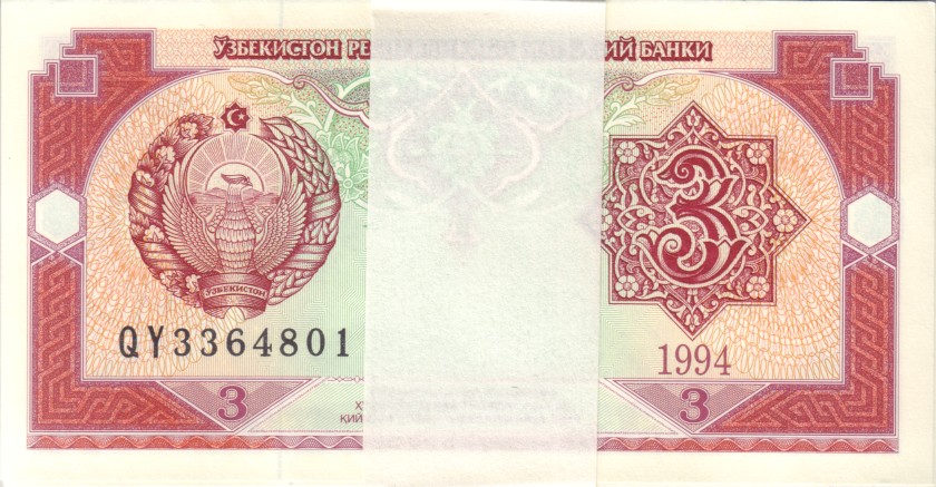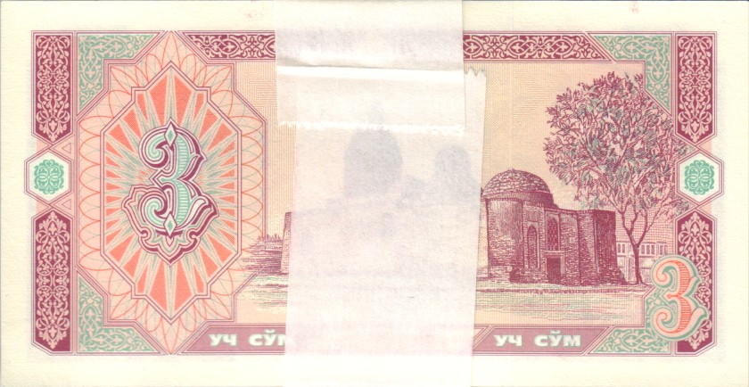 Uzbekistan 3 sum 1994. (Bundle 50 pcs). UNC. P-74a(1)