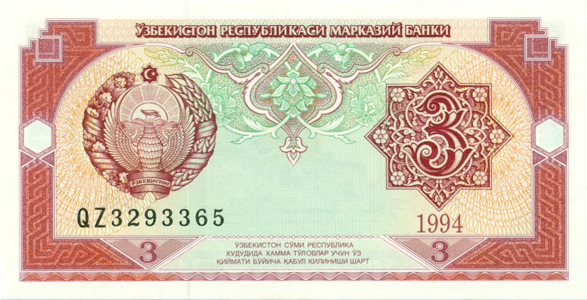 Uzbekistan 3 sum 1994. UNC. P-74a(1)