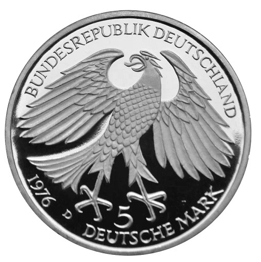 Germany FRG 5 mark 1976. Von Grimmelshausen. PROOF