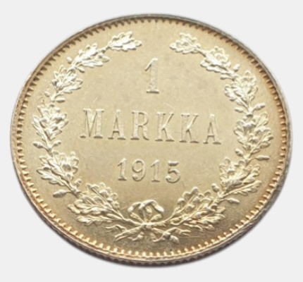 Finland-Russia 1 markka 1915. Nicholas II. (Coin with shine). UNC