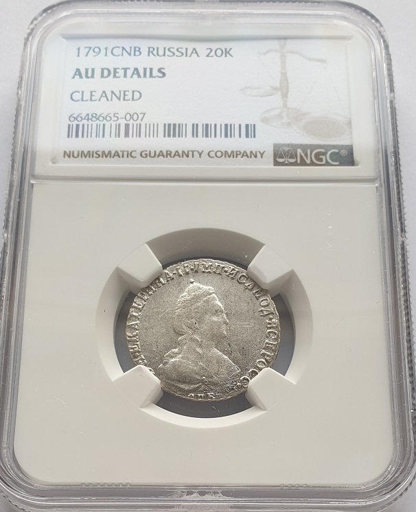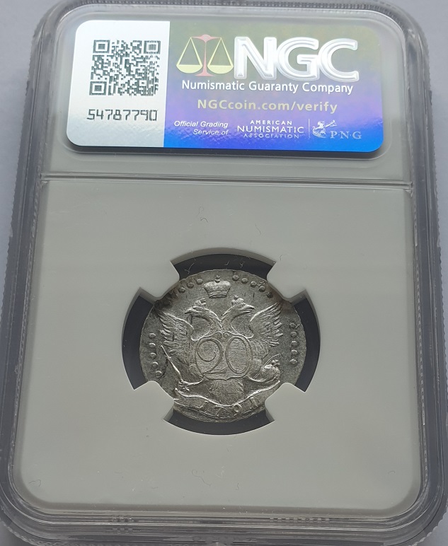 Russia 20 kopeks 1791. Ekaterina II. (Certified). AU