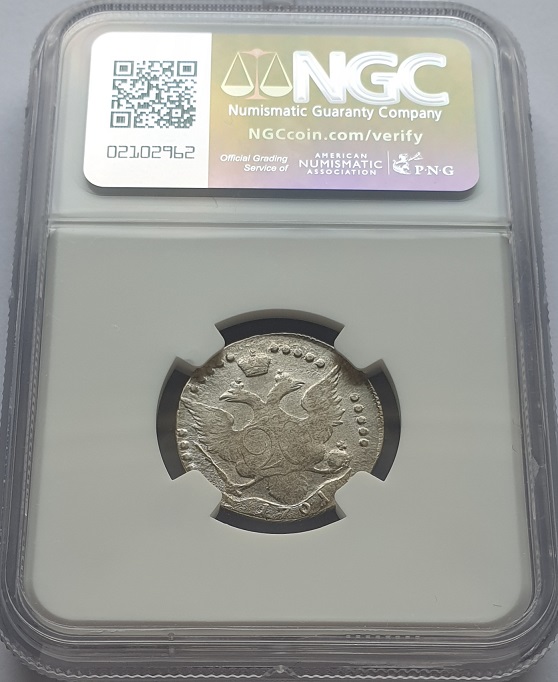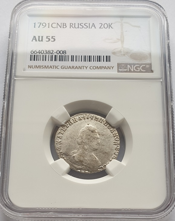 Russia 20 kopeks 1791. Ekaterina II. (Certified). AU-55