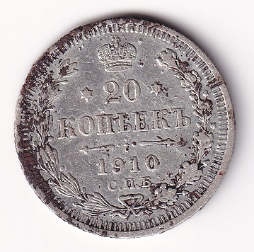 Russia 20 kopeks 1910. Nicholas II. XF-