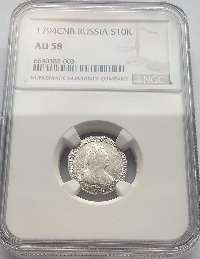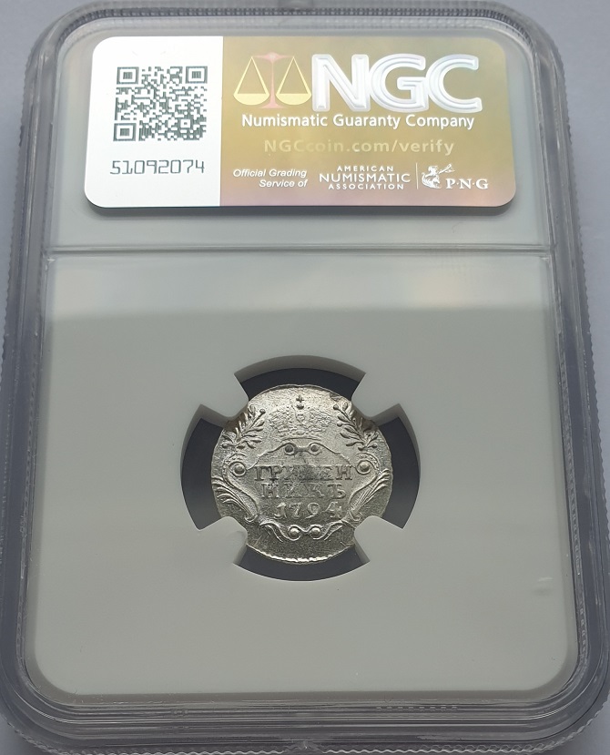 Russia grivennik 1794. Ekaterina II. (Certified). AU-58