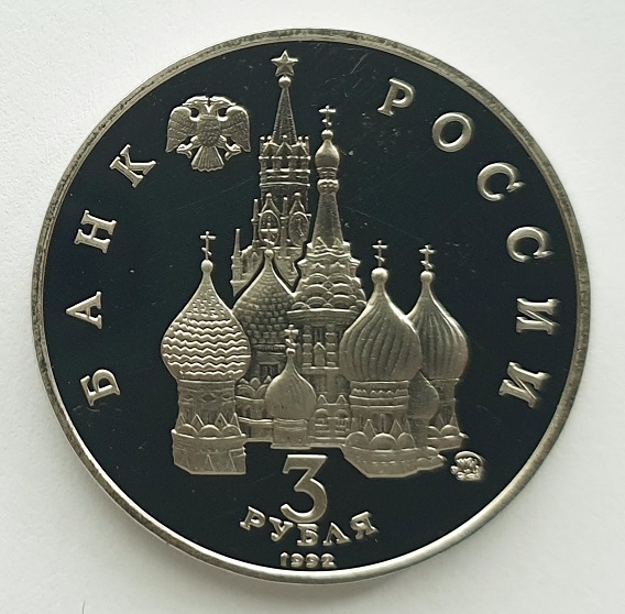 Russia 3 rubles 1992. (International Space Year). PROOF