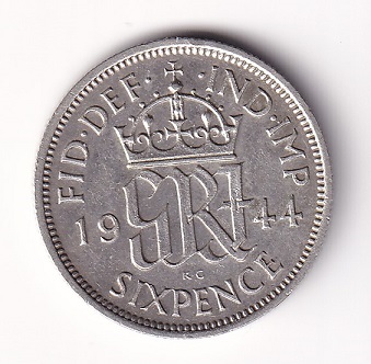 Great Britain 6 pence 1944. George VI. XF-UNC