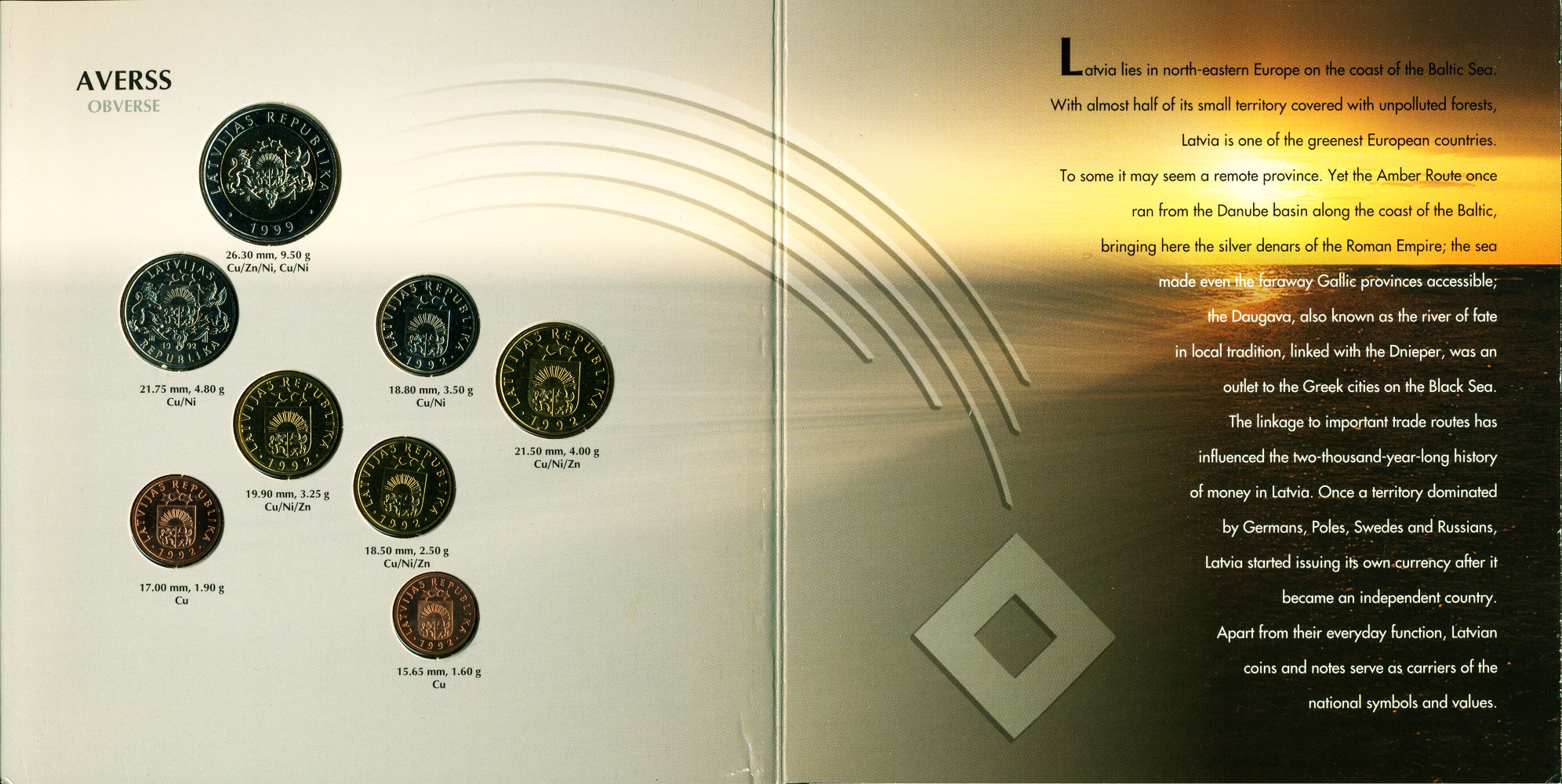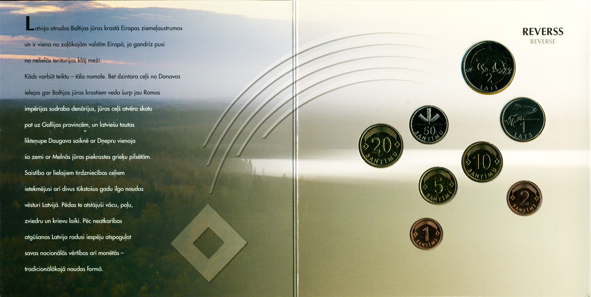 1 lats. 2 lati. 50. 20. 10 santimu. 5. 2 santimi. 1 santims.