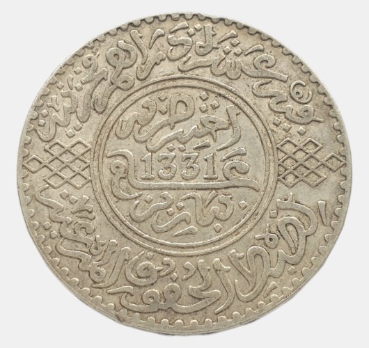 Morocco 10 dirhams / 1 rial 1913. Yusuf. AU-UNC