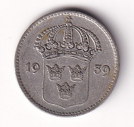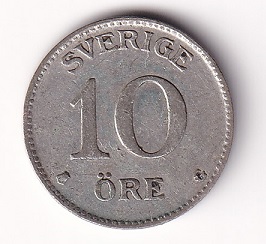 Sweden 10 ore 1939. Gustaf V. VF+