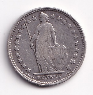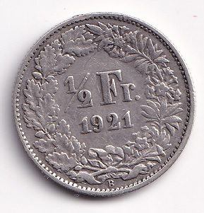 Switzerland ½ francs 1921. Helvetia. VF+