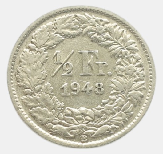 Switzerland ½ francs 1948. Helvetia. XF