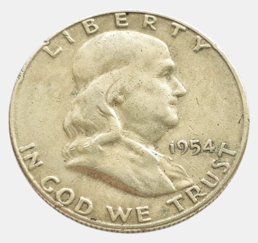 United States half dollar 1954. Franklin Half Dollar. (Letter D). XF