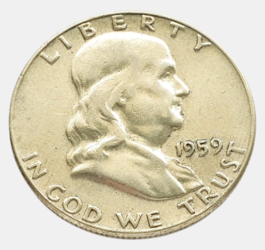 United States half dollar 1959. Franklin Half Dollar. XF+
