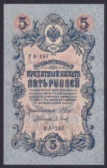 Russia 5 roubles 1909. (Series У. A). UNC. P-10b(1)