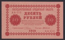 Russia-R.S.F.S.R 10 roubles 1918. AU-UNC. P-89(7)