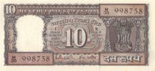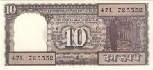 India 10 rupees 1985-1990. UNC-. P-60k