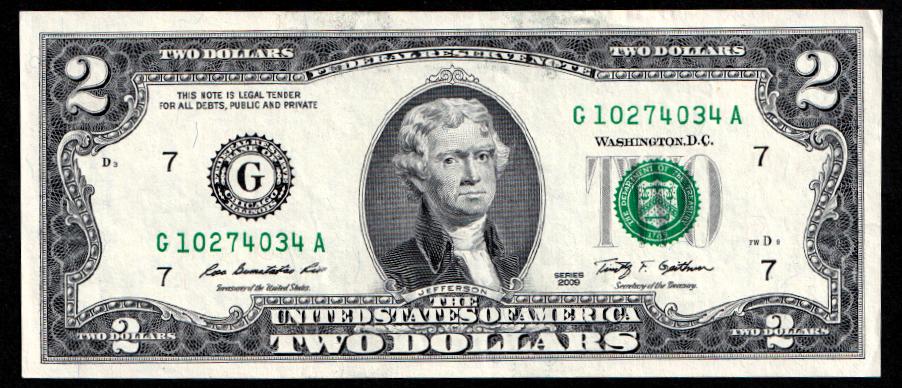 United States USA 2 dollars 2009. (New York). AU-UNC. P-530