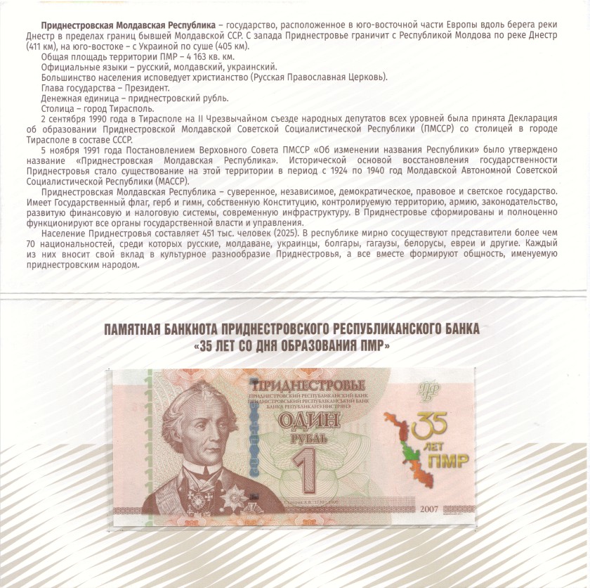 Transnistria 1 rouble 2025. UNC. P-W69E